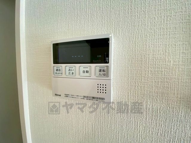 キッチン横からお湯張り、追い炊き、足し湯がボタン一つで楽々操作できる給湯機リモコンです^^忙しい夕飯の準備の時間帯に重宝しますね。