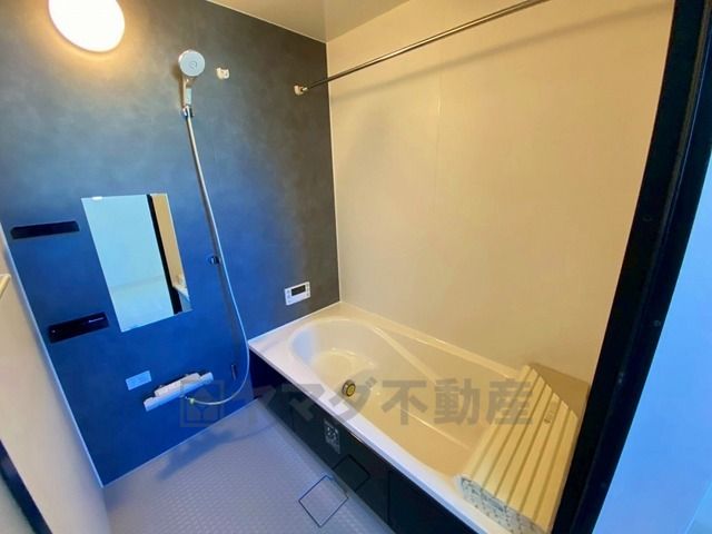 1日の疲れを癒すくつろぎのバスルーム。足を伸ばしてもゆったりと入れるサイズです。お子様と一緒にお風呂に入っても狭くないですね^^