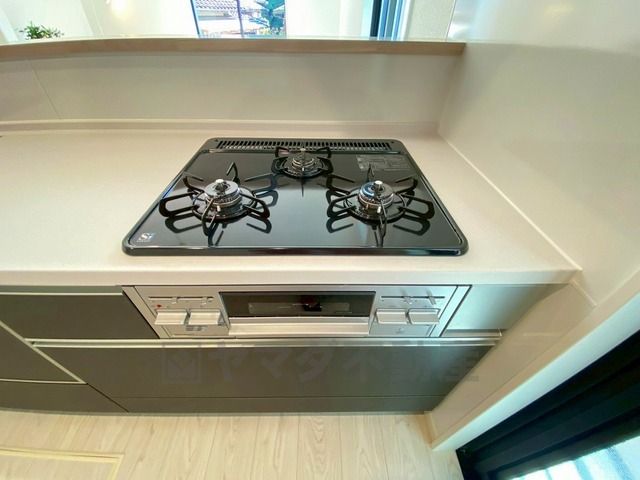 3口コンロなので、効率よくお料理が楽しめます。毎日のお料理も楽しくなりますね^^