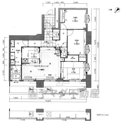 LDK11.8畳、和6畳、洋5.9畳、洋5.8畳 |
