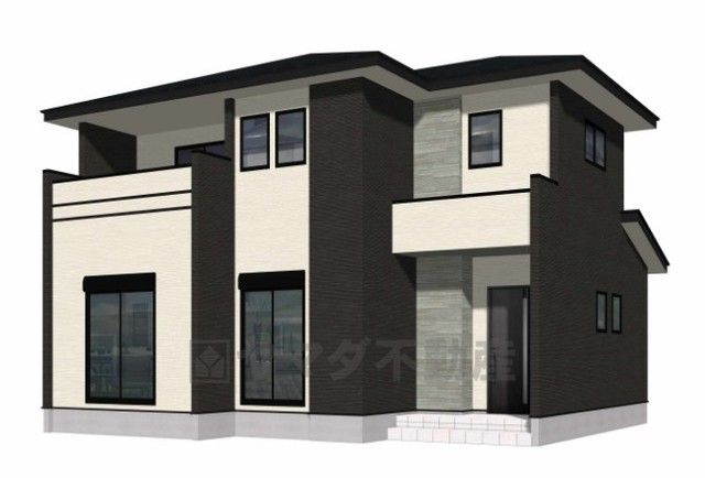完成予想図。ブラック・ホワイトを基調としたシンプルで飽きの来ない外観です。 流行に左右されないベーシックなカラーリングは、永住にふさわしい佇まいです。