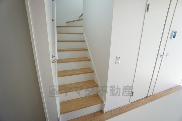同仕様写真。ご年配の方でも安心できる、手すり付き階段です^^段差も低めで設定されてますので安全性にも優れてますね^^