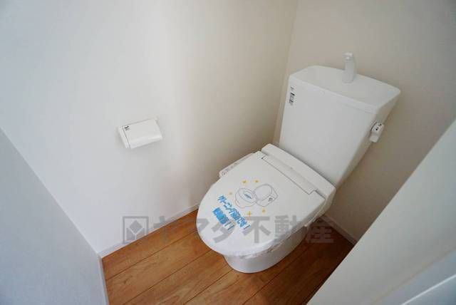 温水洗浄機付トイレです。節水機能もあるので、安心して使えますね。もちろん、1階2階の2ヶ所にトイレがあるので、忙しい朝にもゆとりができますね。