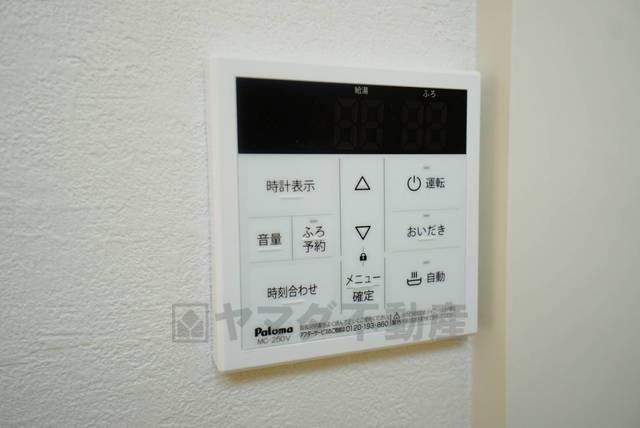 キッチン横からお湯張り、追い炊き、足し湯がボタン一つで楽々操作できる給湯機リモコンです^^忙しい夕飯の準備の時間帯に重宝しますね。