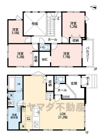 LDK21.2畳(1F)、洋7.7畳(2F)、洋5.2畳(2F)、洋3.5畳(2F) |