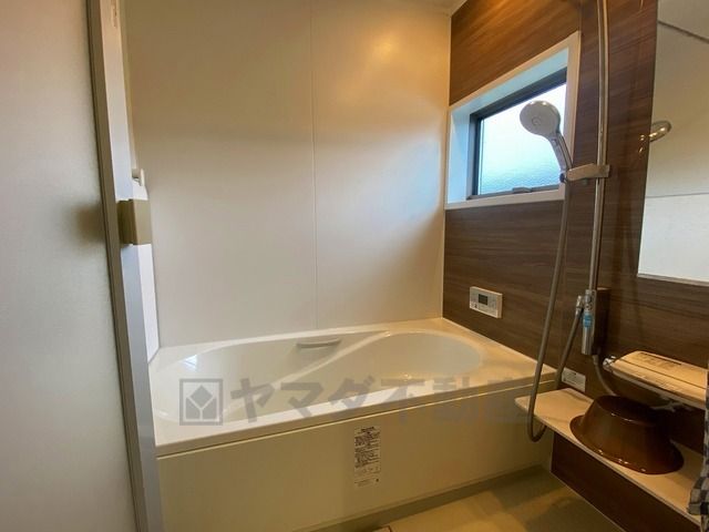 1日の疲れを癒すくつろぎのバスルーム。足を伸ばしてもゆったりと入れるサイズです。お子様と一緒にお風呂に入っても狭くないですね^^