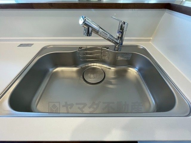 広々とした凸型シンクに洗剤ポケットを標準装備。大きなお鍋など洗いやすいです。洗剤や石鹸、スポンジもすっきりできる収納付き。