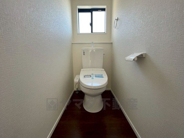 温水洗浄機付トイレです。節水機能もあるので、安心して使えますね。もちろん、1階2階の2ヶ所にトイレがあるので、忙しい朝にもゆとりができますね。