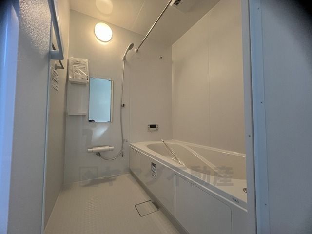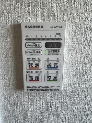 雨の日の洗濯も安心できる浴室暖房乾燥機付き浴室。リモコンで操作もボタン1つで簡単。 浴室暖房乾燥機には、暖房、乾燥、涼風、換気の4つの機能が付いています。タイマー付きです。