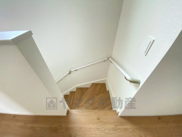 ご年配の方でも安心できる、手すり付き階段です^^段差も低めで設定されてますので安全性にも優れてますね^^