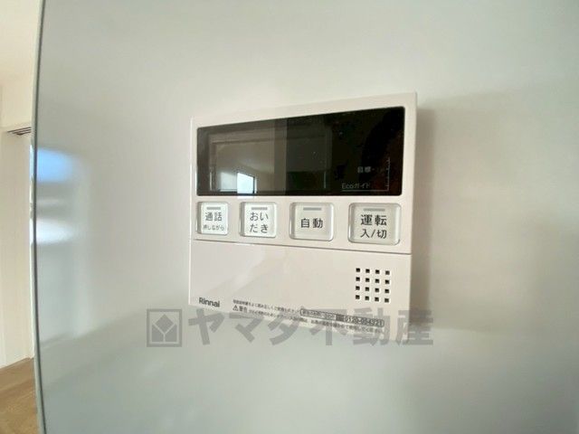 キッチン横からお湯張り、追い炊き、足し湯がボタン一つで楽々操作できる給湯機リモコンです^^忙しい夕飯の準備の時間帯に重宝しますね。