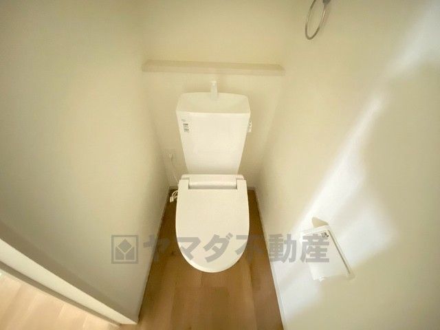 温水洗浄機付トイレです。節水機能もあるので、安心して使えますね。もちろん、1階2階の2ヶ所にトイレがあるので、忙しい朝にもゆとりができますね。