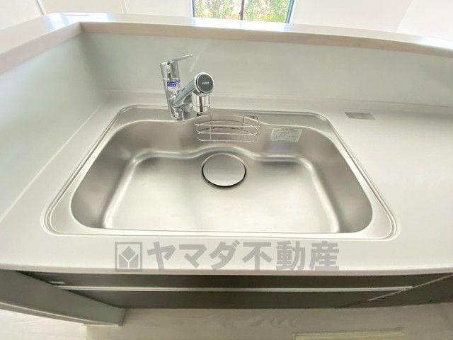 広々とした凸型シンクに洗剤ポケットを標準装備。大きなお鍋など洗いやすいです。洗剤や石鹸、スポンジもすっきりできる収納付き。