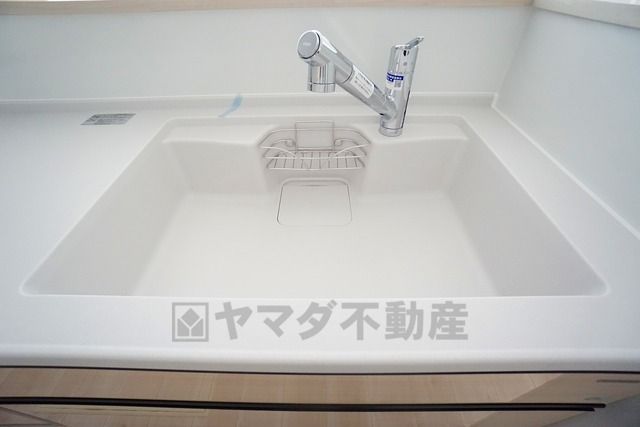 広々とした凸型シンクに洗剤ポケットを標準装備。大きなお鍋など洗いやすいです。洗剤や石鹸、スポンジもすっきりできる収納付き。