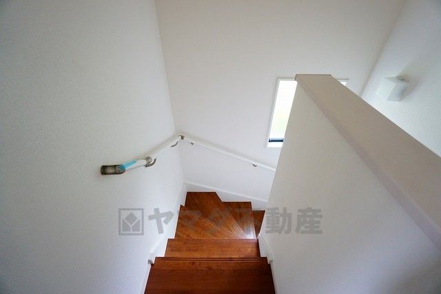 同仕様写真。ご年配の方でも安心できる、手すり付き階段です^^段差も低めで設定されてますので安全性にも優れてますね^^
