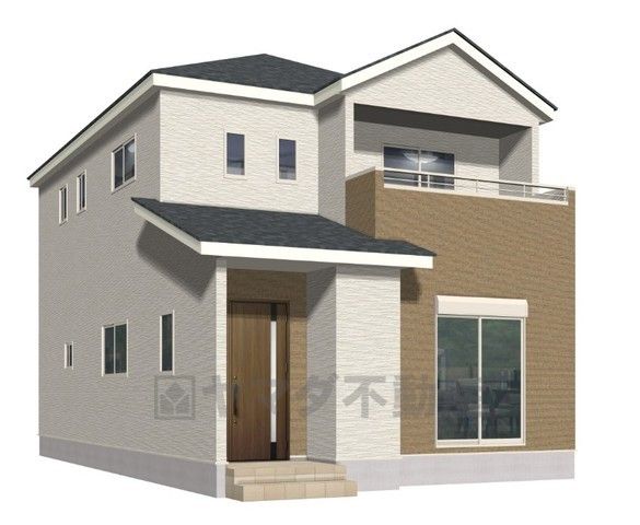 (1号棟)完成予想図。10年間の瑕疵保証が付いた安心の新築戸建。最新の設備で気持ちの良い新生活を送りませんか。
