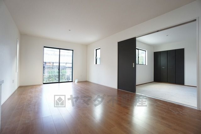 同仕様写真。リビングからの続き間として和室をご用意しました。普段はリビングとつなげて開放的なスペースとして。来客時には客間としてお使いいただけます。
