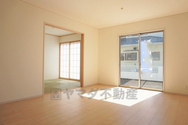 同仕様写真。リビングからの続き間として和室をご用意しました。普段はリビングとつなげて開放的なスペースとして。来客時には客間としてお使いいただけます。