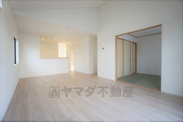 同仕様写真。リビングからの続き間として和室をご用意しました。普段はリビングとつなげて開放的なスペースとして。来客時には客間としてお使いいただけます。