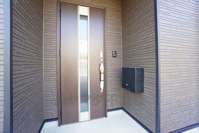 ブラウントーンの玄関扉^^外壁とマッチングしていてかっこいいですね^^家の顔となる玄関扉がかっこいいと、たくさんの人を招き入れたくなりますね^^