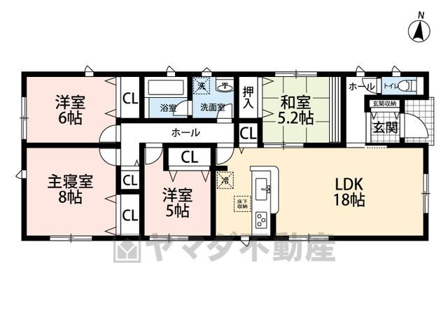 LDK18畳(1F)、和5.2畳(1F)、洋8畳(1F)、洋6畳(1F)、洋5畳(1F) |