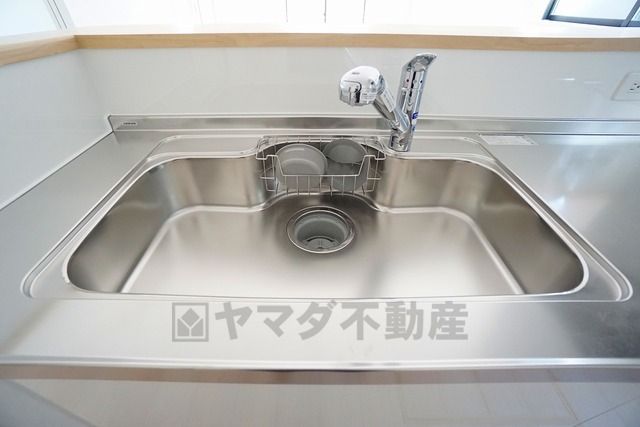 広々とした凸型シンクに洗剤ポケットを標準装備。大きなお鍋など洗いやすいです。洗剤や石鹸、スポンジもすっきりできる収納付き。