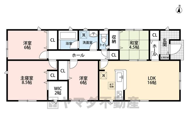 LDK16畳(1F)、和4.5畳(1F)、洋8.5畳(1F)、洋6畳(1F) |