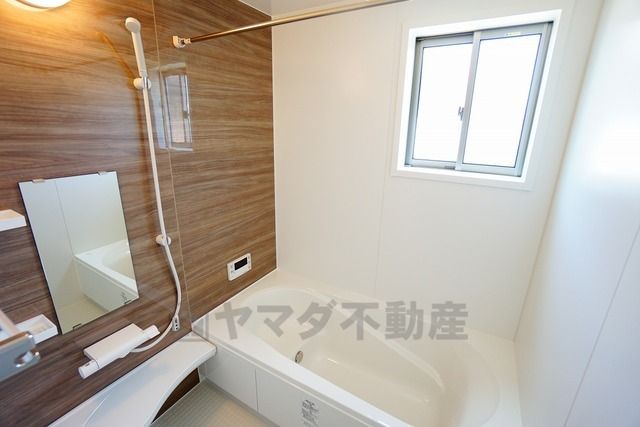 同仕様写真。1日の疲れを癒すくつろぎのバスルーム。足を伸ばしてもゆったりと入れるサイズです。お子様と一緒にお風呂に入っても狭くないですね^^