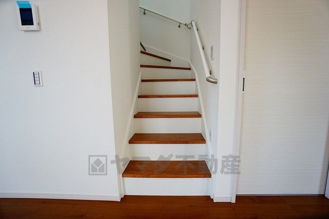 同仕様写真。ご年配の方でも安心できる、手すり付き階段です^^段差も低めで設定されてますので安全性にも優れてますね^^