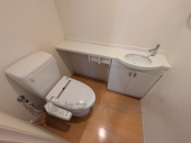 温水洗浄機付トイレです。節水機能もあるので、安心して使えますね。手洗い付きで空間も広く使用できます。