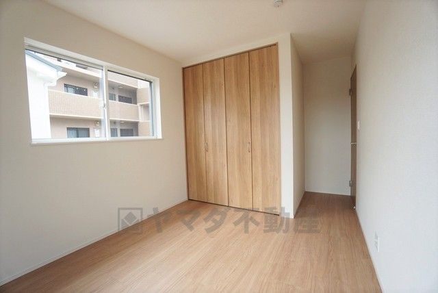 同仕様写真。明るい洋室です。ナチュラル色のフローリングで開放的な優しい雰囲気になっています^^ベッドや机、TVを置いてもゆとりのある広さです。