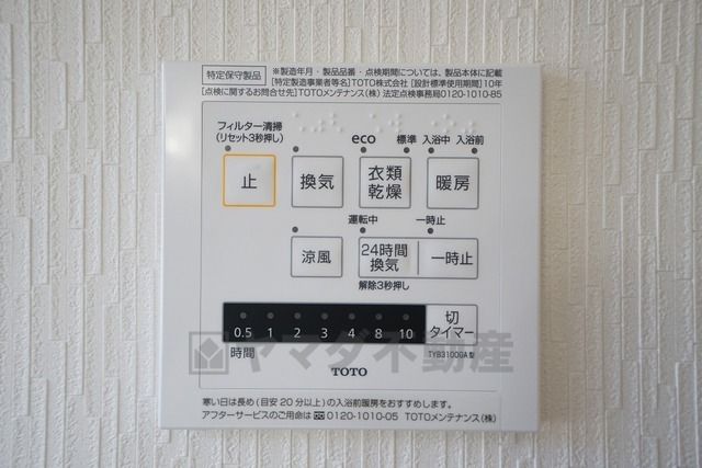 同仕様写真。雨の日の洗濯も安心できる浴室暖房乾燥機付き浴室。リモコンで操作もボタン1つで簡単。 浴室暖房乾燥機には、暖房、乾燥、涼風、換気の4つの機能が付いています。タイマー付きです。