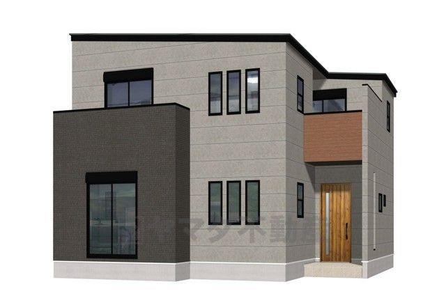 完成予想図。グレーを基調としたシンプルで飽きの来ない外観です。流行に左右されないベーシックなカラーリングは、永住にふさわしい佇まいです。