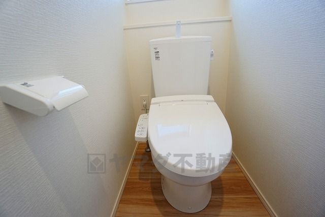 温水洗浄機付トイレです。節水機能もあるので、安心して使えますね。もちろん、1階2階の2ヶ所にトイレがあるので、忙しい朝にもゆとりができますね。