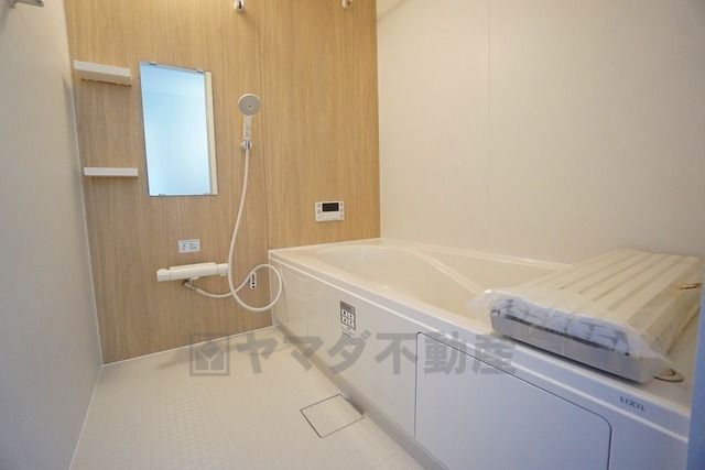 1日の疲れを癒すくつろぎのバスルーム。足を伸ばしてもゆったりと入れるサイズです。お子様と一緒にお風呂に入っても狭くないですね^^