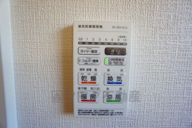 雨の日の洗濯も安心できる浴室暖房乾燥機付き浴室。リモコンで操作もボタン1つで簡単。 浴室暖房乾燥機には、暖房、乾燥、涼風、換気の4つの機能が付いています。タイマー付きです。