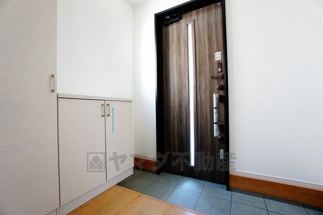 同仕様写真。採光も考えられた明るい玄関です。自動で閉まるタッチキーとTVインターホンが装備されているので、セキュリティーも安心。