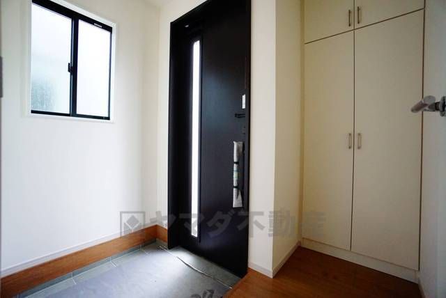 採光も考えられた明るい玄関です。自動で閉まるタッチキーとTVインターホンが装備されているので、セキュリティーも安心。