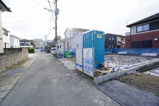 前面道路は公道北側約7.7m、東側約4.1m、私道南側約3.5m。 車通りも少なく、安全性も確保しています^^