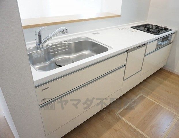 同仕様写真。耐久性にも優れた人造大理石トップです。汚れもサッと拭き取ることができ、お掃除もラクラク。対面式キッチンが家族の会話も盛り上げます。食器洗浄乾燥機付。