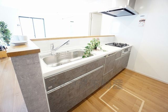 耐久性にも優れた人造大理石トップです。汚れもサッと拭き取ることができ、お掃除もラクラク。対面式キッチンが家族の会話も盛り上げます。食器洗浄乾燥機付。
