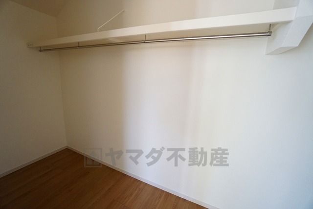 大容量の収納が嬉しいウォークインクローゼット付き。毎日の洋服のコーディネートが楽しくなります。モノを1ヶ所に収納できるので、お部屋もスッキリ。