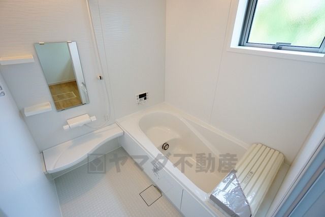 同仕様写真。1坪サイズの浴室は、足をのばしてリラックスできます。浴室乾燥機付きなので、雨の日も気にせず洗濯物が干せます。