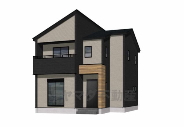 完成予想図。ブラック・グレーを基調としたシンプルで飽きの来ない外観です。流行に左右されないベーシックなカラーリングは、永住にふさわしい佇まいです。