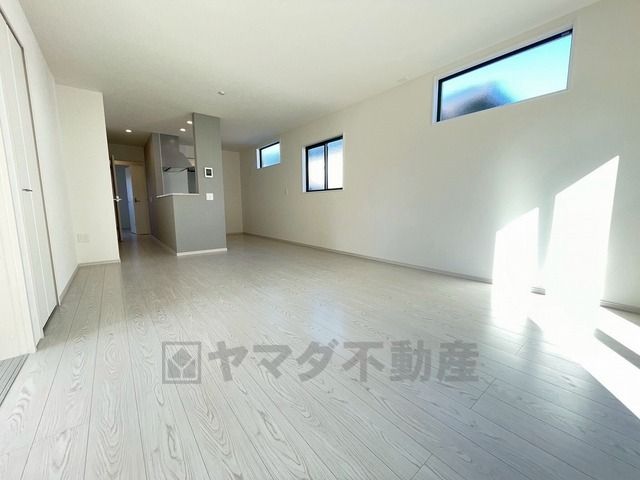 リビングは広々とした設計で、家族が集い、寛ぐ暮らしの空間を演出しています。将来にわたって住みやすくプランニングを重ねて設計された間取で日々の生活をしやすい導線を考えた居住空間を創り上げております^^
