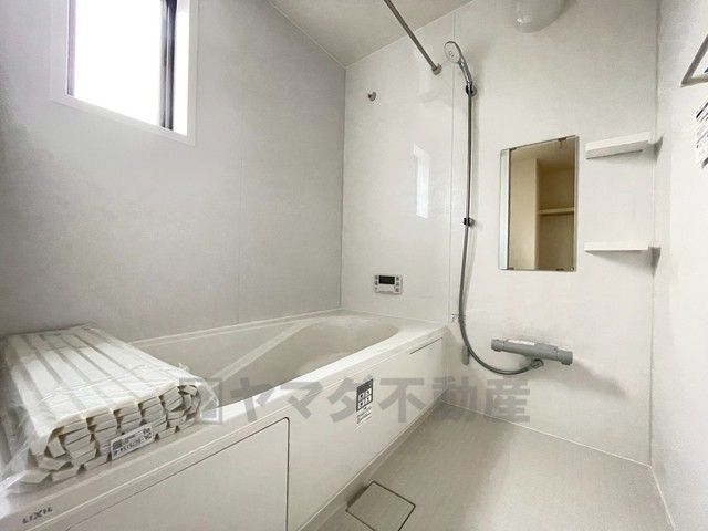 1日の疲れを癒すくつろぎのバスルーム。足を伸ばしてもゆったりと入れるサイズです。お子様と一緒にお風呂に入っても狭くないですね^^