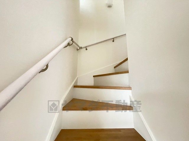 ご年配の方でも安心できる、手すり付き階段です^^段差も低めで設定されてますので安全性にも優れてますね^^