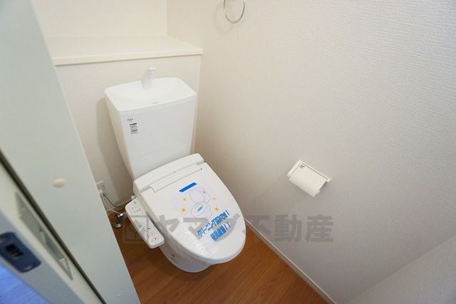 温水洗浄機付トイレです。節水機能もあるので、安心して使えますね。もちろん、1階2階の2ヶ所にトイレがあるので、忙しい朝にもゆとりができますね。