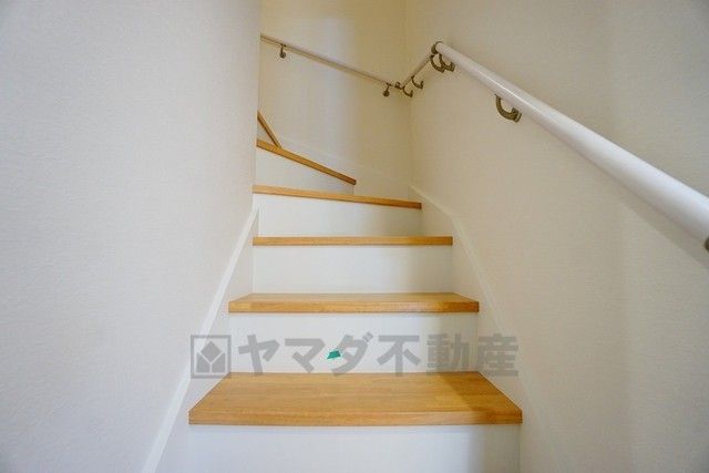 同仕様写真。ご年配の方でも安心できる、手すり付き階段です^^段差も低めで設定されてますので安全性にも優れてますね^^