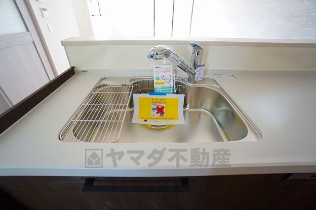 広々とした凸型シンクに洗剤ポケットを標準装備。大きなお鍋など洗いやすいです。洗剤や石鹸、スポンジもすっきりできる収納付き。